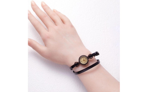 ・ブレスウォッチ アンティーク調フェイス時計とイタリアンレース ベルトカラー:黒 1本