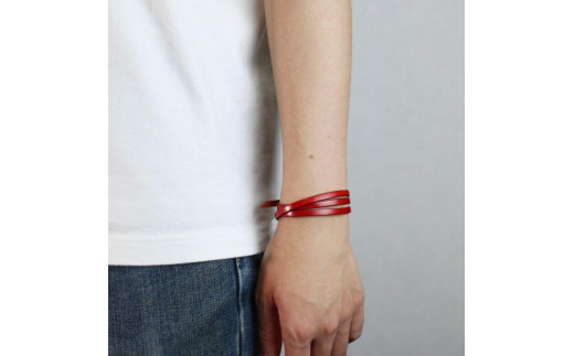 巻き方は自由! 3重巻き レザーブレスレット アンクレットにも! 牛革  栃木レザー ベルトカラー:紅 WL009 紅