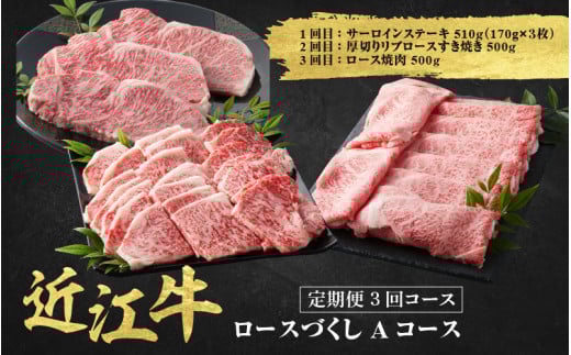 近江牛ロースのステーキ、すき焼き、焼き肉が楽しめる3か月定期便