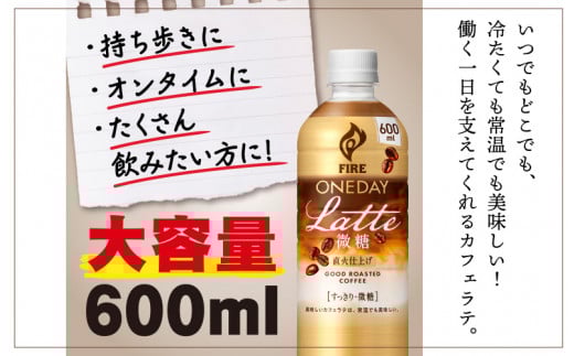 【定期便12回】キリン ファイア ワンデイ ラテ微糖 600ml ペットボトル × 24本 × 12ヶ月