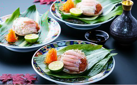 せこ蟹寿司(酢飯の上にカニ身と内子、外子を盛り付けてください。お好みで椎茸や錦糸卵、三つ葉等を一緒に乗せていただくと一層美味しくお召し上がりいただけます。)