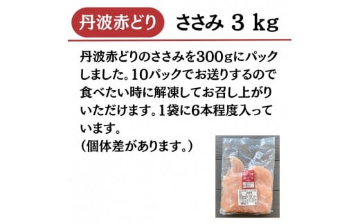 亀岡育ち 鶏肉 大人気 ささみ 3kg 300g ×10袋