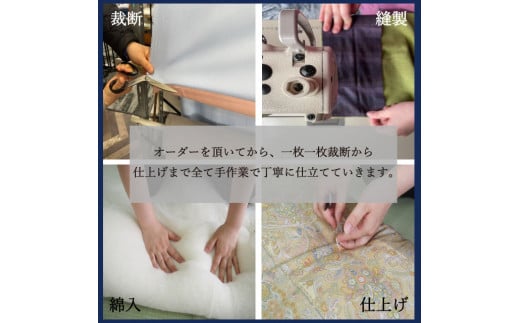 厚生労働大臣認定の寝具制作一級技能士が3名いる亀屋寝装センターが、裁断から仕上げまで全て手作業により、わた・生地等にこだわり作っている掛布団です。