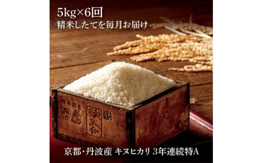 【11月発送】【定期便】令和7年産 新米 5kg 6ヶ月 京都丹波産 キヌヒカリ 白米<JA京都 たわわ朝霧> 6回定期便 5kg×6回 計30kg 毎月発送に合わせて精米
