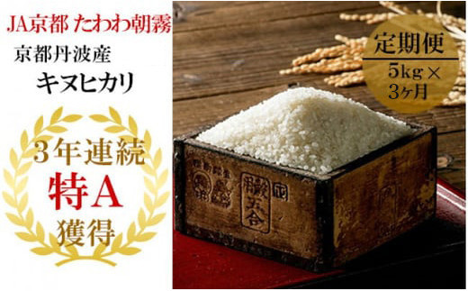 【2月発送】【定期便】令和7年産 新米 5kg 3ヶ月 京都丹波産 キヌヒカリ 白米<JA京都 たわわ朝霧> 3回定期便 5kg×3回 計15kg 毎月発送に合わせて精米
