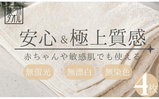 【無漂白・無蛍光・無染色】バスタオル4枚 日本製 自然派ナチュラル コットン100% 泉州タオル