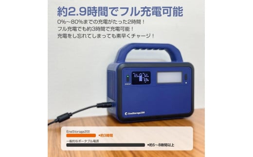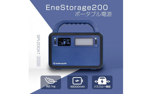 コンパクトサイズがちょうどいい!コンパクト ポータブル電源 200W LEDライト付 EneStorage200 リン酸鉄 200W モバイルバッテリー 48000mAh 大容量 蓄電池 パススルー 小型 防災 アウトドア 停電 キャンプ LED照明 LCDディスプレイ 非常用 防災 SPI-200AT