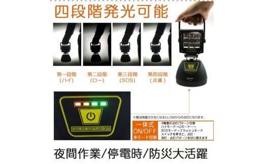 充電式LED 9W USB出力 底部 強力マグネット 120°ワイド 広角照射 作業灯 スタンドライト YC-9T