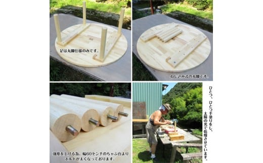 手作り木製 ちゃぶ台 直径80cm 高さ35cm【007B-131】