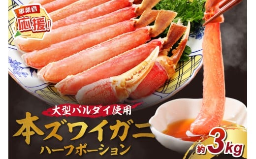 生ズワイガニむき身 ハーフポーション 大型バルダイ使用 約3kg【ふるさと納税3.0】【087B-042】