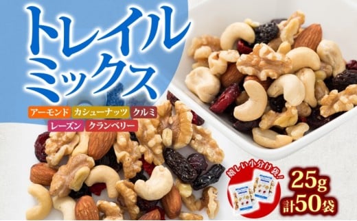 ミックスナッツ トレイルミックス ナッツ & ドライフルーツ 25g×50袋 素焼き ミックス素焼きナッツ ナッツミックス ナッツ類 小分け 個包装 おつまみ つまみ アーモンド カシューナッツ くるみ クランベリー レーズン おやつ 朝食 みの屋 兵庫