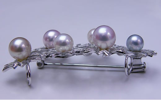 桜色のオリジナルのあこや真珠を使った存在感溢れるオリジナルブローチです。