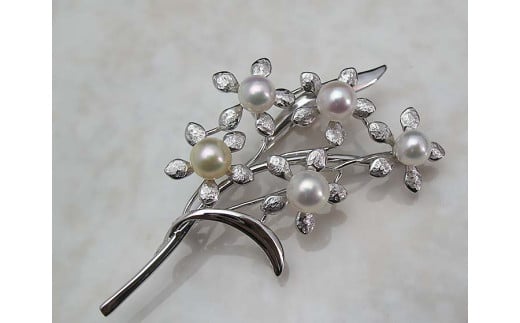 忘れな草のブローチ あこや真珠
