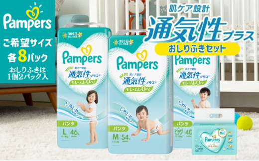 通気性プラス M:54枚 パンツ タイプ 8パックと おしりふき 8パック [ Pampers おむつ オムツ ]