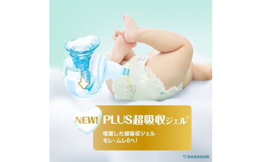 (*)当社国内向けテープ製品内比較。 (**)おむつ重量の10倍の尿を吸収 (***)伸ばす前との比較 (****)"肌へのいちばん"以外の当社製品比