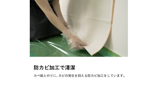 ●本品は品質を保持するため、袋内部を脱酸素状態にしています。この影響でカベ紙の包装形状が変形している場合がありますが、貼りつけ作業や貼りつけ後の仕上がりに問題はありません。