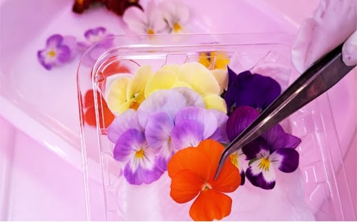 7. [№5359-0042]【Cセット】エディブルフラワー(生花20輪)3パック サラダクレソン(80g) エディブルフラワー(ドライ2g) 食用花 食べられる花 生け花 誕生日 プレゼント 飾り付け 食用 お菓子【配達不可:離島】
