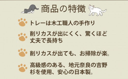 高級吉野杉トレーセット(ミルダン爪とぎ1個付)トレーは木工職人の手作り!