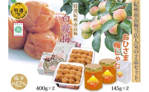 特選紀州南高梅「白龍梅」、無添加「おひさま梅じゃむ」、人気の2品セット yokosho006A