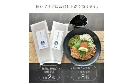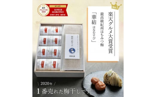 華結(まろやか梅)22g×4粒、華結(あまみつ梅)22g×4粒、そば各250g(韃靼そば、山椒韃靼そば)
