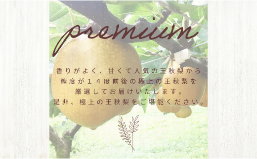 香りがよく、甘くて人気の王秋梨から糖度が14度前後の極上の王秋梨を厳選してお届けいたします。