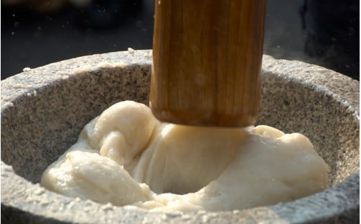 年末になれば、ショッピングモールなど様々な場所で出向いて杵つき餅をライブでつくって販売するのですが、毎年行列ができるほど。練り出しではない、杵つきならではの伸びと味をお楽しみください。鍋に入れても煮崩れしません。