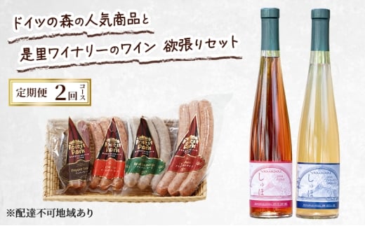 定期便 2026年 先行予約 ドイツの森の人気商品と是里ワイナリーのワイン 欲張り 2回コース ソーセージ 加工品 ワイン ピオーネ 清水白桃