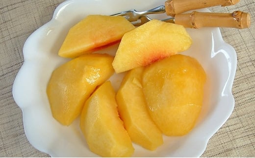 黄金桃は白桃と比べ、ややしっかりした食感が特徴的。噛みごたえがありますが、追熟が進むと、とろ~りとろけるような食感に。果汁が多くジューシーな味わい。甘いだけでなく、程よい酸味もあり、味のバランスがとてもよい桃です。