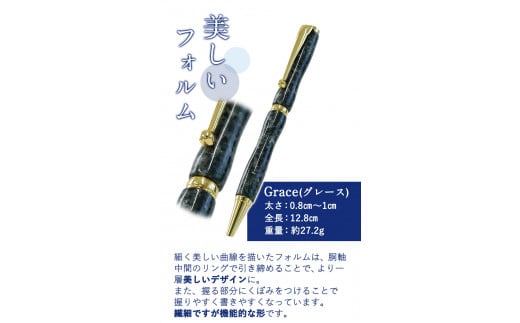 7. 76. 矢掛町産天然石ボールペン 1本 Grace(グレース) 《受注制作のため最大3か月以内に出荷予定》 備中青みかげ ボールペン 小野石材工業株式会社 Rare Blue(レアブルー)