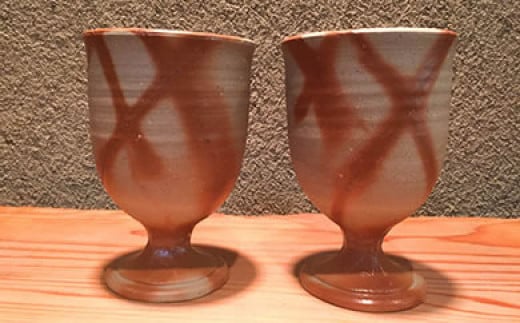 ★品切れ中★備前焼「ワイングラス緋襷」ペアセット(佐藤正徳・作)