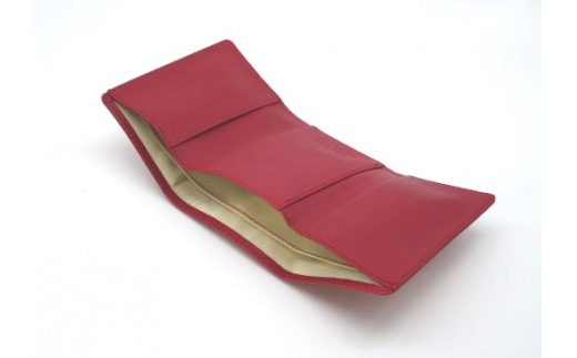 牛革(シュリンク革)コンパクト三つ折財布【レッド】