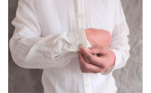 スタンドカラー オーガニックコットンダブルガーゼ・ユニセックスシャツ Mサイズ/太いストライプ【男女兼用 柔らかい 肌に優しい シャツ ゆるシャツ トップス おすすめ 広島県 尾道市】