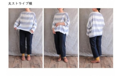 7. オーガニックコットン100%ダブルガーゼ・プルオーバー 柄:太いストライプ(横)【柔らかい 肌に優しい シャツ ゆるシャツ トップス おすすめ 広島県 尾道市】