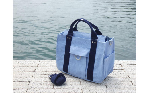miniーKOGU (A4・ファスナー開閉)水色/紺 2WAY[尾道 帆布鞄 彩工房]【尾道 はんぷ バッグ トートバッグ かばん 特産品 シンプル ファッション 人気 おすすめ 広島県 尾道市】