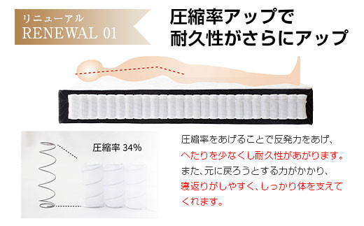 反発性が強く寝返りもしやすいうえに、ふわっとしながらしっかりしたホテルライクな寝心地を実現しました。