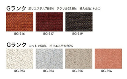 ソファ生地のカラーは、Hランク・Gランク生地からお選びいただけますので、寄附お申込み後にお送りする【申込書】でご希望のカラーをご指定ください。
