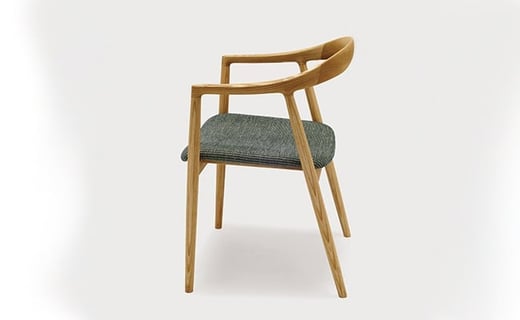 「とにかく小ぶりで美しいアームチェアが欲しい。」という思いからデザインした椅子です。「hata」という名は「旗」「凧」から。アームから背にかけての、はためくようなラインから名付けました。