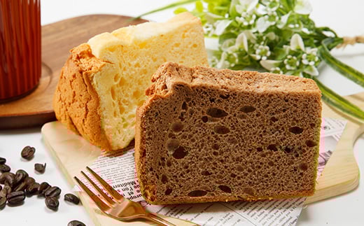 ・シフォンケーキ(2種)[計8個(1個は、直径20センチのケーキを8カットしたもので、高さ10cm程度です)]