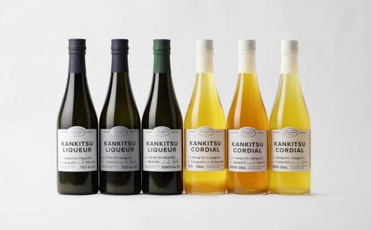 柚子やすだち、伊予柑、檸檬を使ったリキュールとコーディアルです。リキュールのベースにしているスピリッツ(原酒)も果実を原料に自家発酵蒸留しています。コーディアルも原料は果汁を搾った後の果実と氷砂糖だけ。それぞれの柑橘の違いを楽しめるセットです。