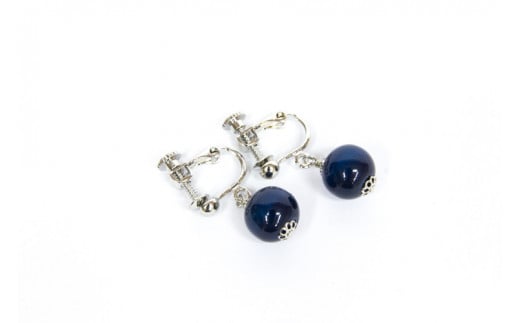 026-001 【イヤリング】藍染木玉1cm玉 イヤリングorピアス