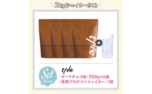 <選べる> プロテイン ダークチョコ味 (2kg・500g×4/シェイカー付) tive ホエイ ソイ ダブルプロテイン 人工着色料・保存料不使用 グルテンフリー たんぱく質含有量73% アミノ酸スコア100 ダイエット コラーゲン ヒアルロン酸 送料無料 セット【man231-A】【味源】