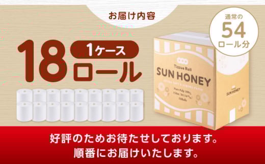 3倍長持ち トイレットペーパー サンハニー (無地ホワイト) シングル 18ロール ロング巻き 150m / トイペ シングル バージンパルプ 100% 150m トイレ 省スペース 丁寧な梱包 3倍巻き 長期保存 長持ち コスパ 3倍 まとめ買い 大容量 業務用 ストック 生活必需品 日用品 日用消耗品 消耗品 贅沢 生活用品 高品質 防災 災害 備蓄 【機能素材株式会社】[ATAA004]