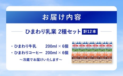 7. ひまわり牛乳 ひまわりコーヒー 12本セット (各200ml×6本) パック牛乳 コーヒー牛乳 【グレイジア株式会社】 [ATAC313]