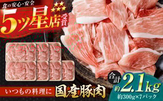国産 豚肉 切り落とし 約300g×7 総計約2.1kg 豚 切落し 赤身 もも肉 小分け 【(有)山重食肉】 [ATAP043]