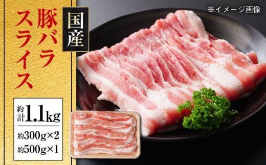 国産 豚バラ スライス 約300g×2 約500g×1 総計約1.1kg 豚 バラ 炒め物 鍋 小分け 【(有)山重食肉】 [ATAP046]