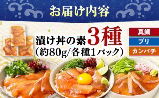真鯛 ブリ カンパチ 漬け丼の素 食べ比べ3種セット 約80g×各種1パック / たれ タレ 冷凍 小分け パック 海鮮丼 漬け丼 手巻き 簡単 惣菜 タイ ぶり 鰤 人気  高知 土佐【興洋フリーズ株式会社】[ATBX034]