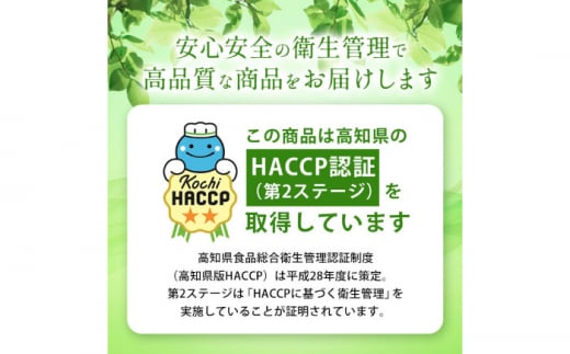 高知県食品総合衛生管理認証制度の高知県版HACCP第2ステージを取得し、安心・安全な衛生管理を徹底しています。