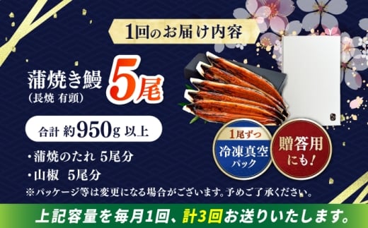 【3回定期便】極上国産うなぎ四万十桜 蒲焼き5尾 たっぷり大サイズ / 国産 高知 四万十 うなぎ ウナギ 鰻 蒲焼き うな重 惣菜 贅沢 【有限会社もりた】 [ATHE009]