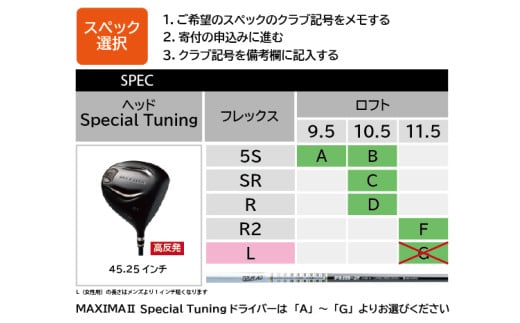 【スペック選択方法】SPEC表の中から、ご希望スペックのアルファベットを備考欄にご入力ください。