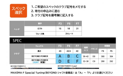 【スペック選択方法】SPEC表の中から、ご希望スペックのアルファベットを備考欄にご入力ください。